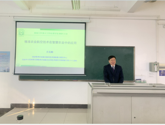 兰玉彬院士就精准农业航空技术在智慧农业中的应用给同学们进行了主题讨论,结合自身早年在美国留学经历出发,主要就智慧农业、精准农业航空发展情况、无人农场、人工智能、智慧果园等方面进行了详细阐述,最后兰玉彬院士对同学们以后的学习方向进行了展望,鼓励同学们学习融合交叉学科,早日推进机器智能时代在农业方面的决策和管控。