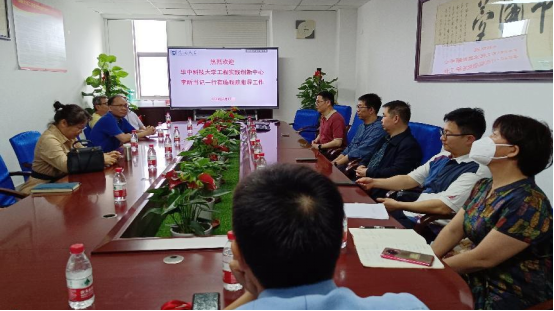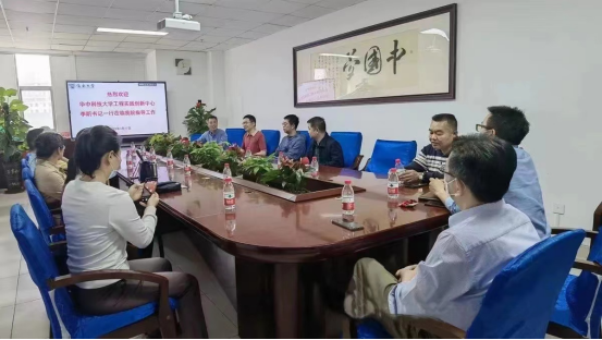 2023年3月17日下午,华中科技大学工程实践创新中心直属党支部李昕书记、启明公司双创办公室詹必胜主任一行4人莅临公司参观交流,座谈会在研发楼417会议室举行。suncitygroup太阳新城实验室主任梁栋及全体实验人员参加,陈振斌副经理主持会议。