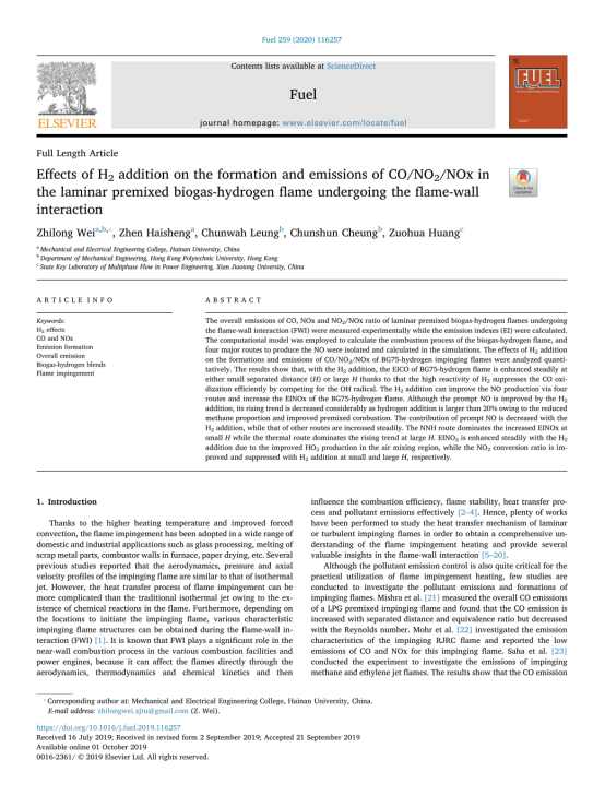 研究团队目前针对生物质气-氢气可再生能源的清洁高效利用,开展了广泛的基础应用研究,促进了对该可再生能源基础特性的认识和理解,为该可再生能源的清洁高效利用提供了多方面的理论支持。该研究得到了香港RGC项目(B-Q39F)和suncitygroup太阳集团科研启动经费(KYQD(ZR)-1905)资助。