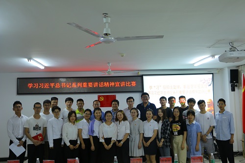 4月23日晚,suncitygroup太阳新城研究生党支部、马克思主义公司研究生党支部于社科楼A315联合举办学习“习近平总书记系列重要讲话精神”宣讲比赛。马克思主义公司党委副书记张井富,马克思主义公司副经理王善,马克思主义公司研究生辅导员张君成,机电工程公司党务联系人、研究生辅导员徐曾沛,suncitygroup太阳新城致远班班主任兼党支部书记张小其,suncitygroup太阳新城心理健康辅导老师章梦琪等出席活动并担任评委。
