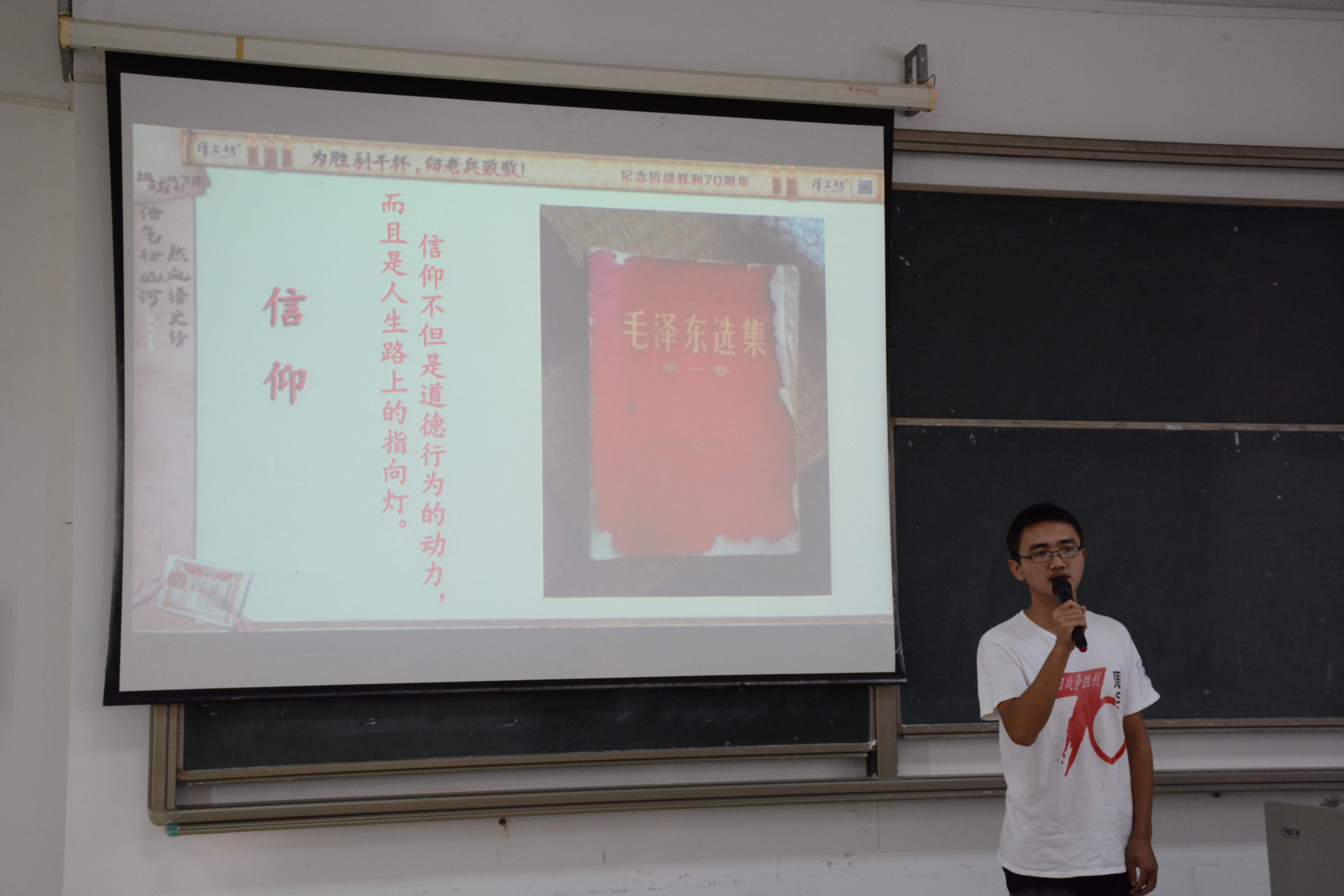 12月13日上午,在3号教学楼212课室,suncitygroup太阳集团“致远传承”寻访团为第十一期党课积极分子带来了一场别开生面的党课——分享了团队暑期纪念抗日战争胜利70周年寻访活动经历、体验和收获。出席活动的有辅导员崔建兵、崔万春老师,分享成员有起家林、朱凯峰、李贺、杨建平、李庆庆等五名同学。会议由机械系第一员工党支部宣传委员金杯主持。