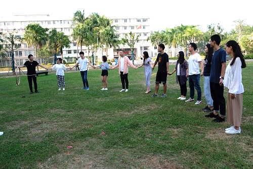 交流会结束后,全体与会同学移步至起点草坪,进行了素质拓展活动。本次素质拓展活动有团组风采展示、智传呼啦圈、6人7足及心有灵犀等环节,整个活动过程气氛活跃,同学们积极热情的参与其中,相互协作,极大的增强了同学们的团队意识与实践动手能力。