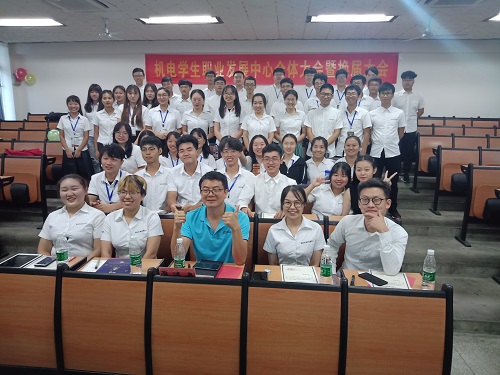 六月淅沥,盛夏缤纷。2019年6月16日下午两点半,机电员工职业发展中心全体大会暨换届大会在1-202教室圆满举行。学工办主任崔建兵老师出席,中心全体员工干部参加。对外关系部李晓雨主持本次大会。