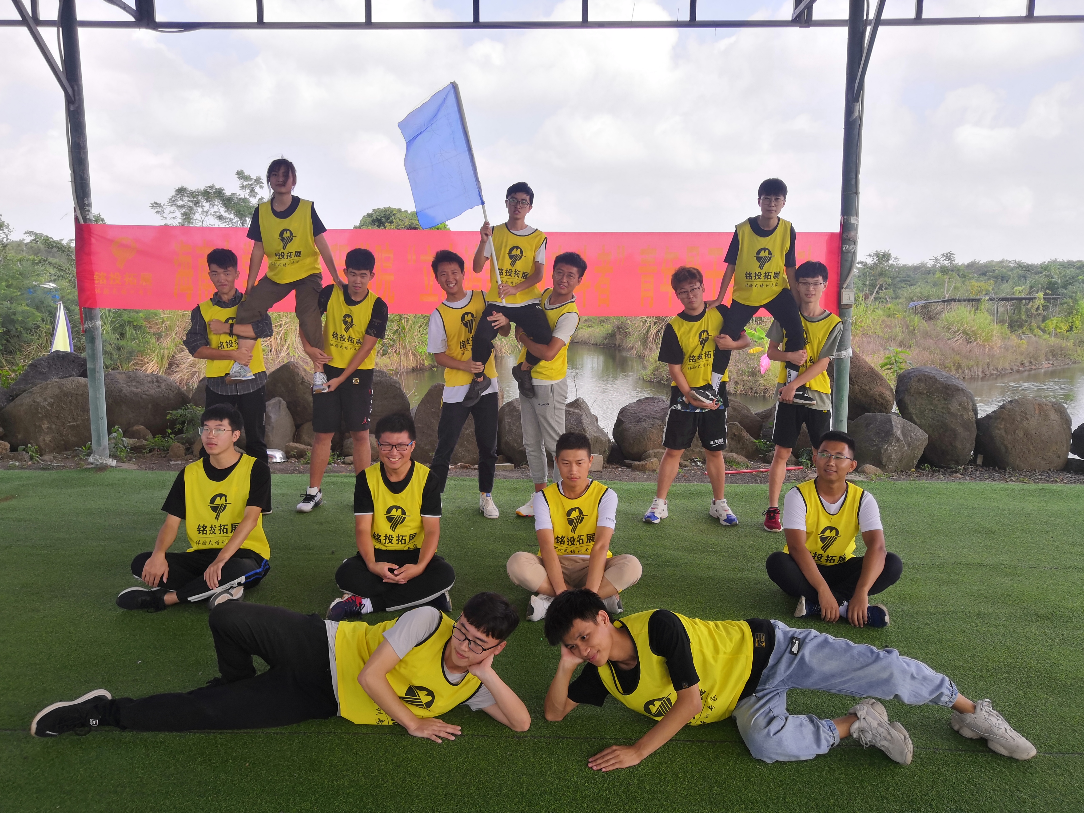 16日上午进行了建立红色军团、无敌战车与冰海沉船三个项目。在建立红色军团项目中,所有参与人员分为了两队并分别选出了队长、副队长与旗手,两队队员通过默契的配合摆出了属于他们自己的队伍logo。无敌战车项目中各队队员进入履带中前进,每个人都尽了最大的努力,成功让自己的“战车”冲破终点。上午最后一个项目是冰海沉舟,要求用6块半的木板将15人渡过冰海,在大家的通力合作下,最后有一支队伍成功完成了这项艰巨的任务,每个人都在其中付出了自己的努力并为团队做出了牺牲,正如教练说的话:“你自己轻松了,别人就很难了”。
