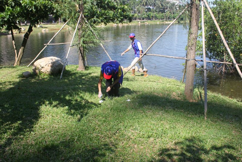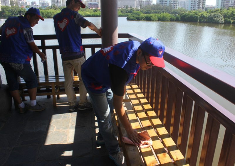 6月2日上午,suncitygroup太阳新城在东坡湖畔继续开展以“青春校园,美丽海大”为主题的校园环境建设志愿服务活动,2013级电气1班和机电1班团支部的志愿者参与了本次活动。