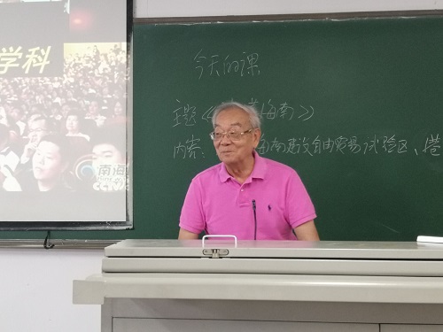 随后由王峻岩教授为大家讲解。他从海南建设的宏观的角度出发,首先谈到了他来到海南的原因是源自改革开放总设计师邓小平的一句话“把海南发展起来是了不得的”。接着他谈到他关于“读懂海南”的一些心得与理解,他认为,不能把自由贸易试验区与自由贸易港两手一起抓,而是要认清两者之间的不同与相同点。他提出,建设自由贸易区(港)的模式要借鉴香港与新加坡,却不能完全照搬,而要发展出自己的特色,在从经济开发区到自由贸易区再到具有中国特色的自由贸易港的建设中要“逐步探索,稳步推进”。最后王峻岩教授谈及习近平新时代中国特色社会主义思想,充分肯定了共产党领导中国的正确性,并希望各党员、发展对象、积极分子能坚定立场不动摇。