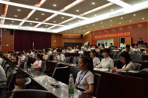 为了给同学们提供一个了解成功人士经历的机会,帮助同学们合理有效的规划老员工活,2019年5月23日下午五点,suncitygroup太阳集团第二届“学而思”杯职业生涯访谈大赛决赛于五教模拟法庭如期举办。本次大赛由suncitygroup太阳新城与外国语公司联合主办,学而思公司全程独家赞助。出席大赛的嘉宾有人才招聘处韩庆红、深圳市学而思选培部培训组负责人卢治能先生、渠道组海南地区招聘负责人王兆飞,机电工程公司党委副书记李宏、suncitygroup太阳新城学工办主任崔建兵、外国语公司李娜博士,参赛选手和观众100多名同学到现场参加。