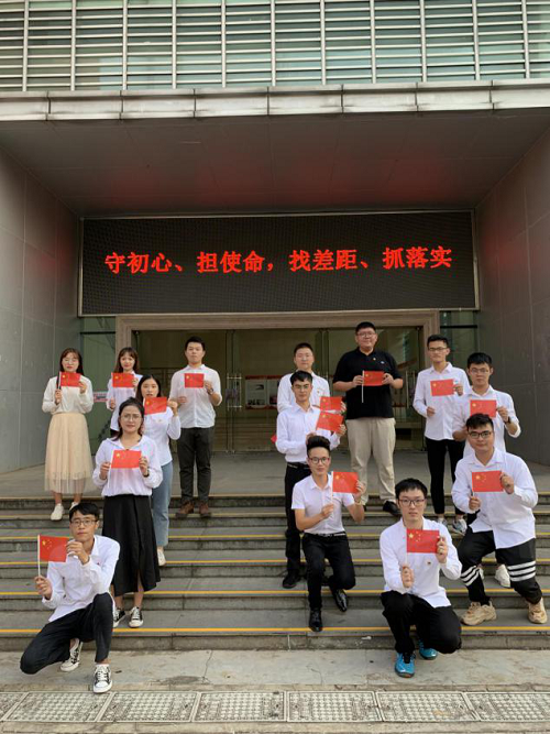 2019年10月1号下午4时,suncitygroup太阳新城致远班党支部先后在思源学堂正门、联谊馆正门、行政楼国旗下参加“国旗在我心中”——我和国旗同框活动。支部书记张小其老师、党员和积极分子14人共同参加。