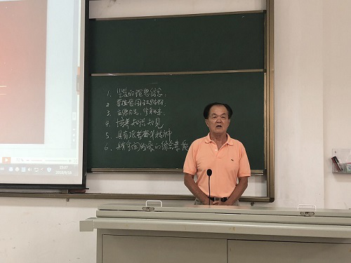 支部书记崔建兵老师从入党选择、入党动机等方面做了详细介绍,希望大家端正入党动机,积极向党组织靠拢,深刻把握时代发展要求。同时,也对18级新生们的老员工活提出美好希冀,期望同学们乐观向上,加强身体锻炼,做一个全面发展的老员工。