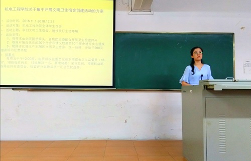 会议开始,袁周米琪老师向全体员工干部介绍《suncitygroup太阳新城关于集中开展文明卫生宿舍创建活动的方案》,要求各班级组织同学加强宿舍文明卫生建设,并组织卫生检查活动。接着她又提到了“到梦空间”系统的使用,并给大家介绍该系统的相关情况,要求各团支部做好第二课堂成绩单的相关工作。