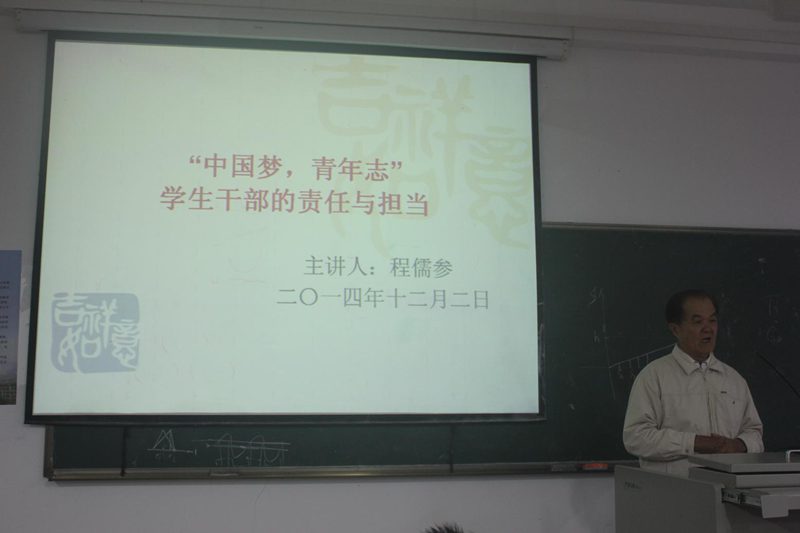 为增强员工干部责任与奉献意识,树立良好楷模形象以带动公司学风与文化建设,12月2日下午,suncitygroup太阳新城特邀公司退休老干部程儒参同志在5教102针对2013级员工干部举行以“中国梦,青年志”为主题的讲座,对员工干部的责任与担当给予最真挚的寄语与建议。出席讲座的有退休老干部王荣老师,2013级一百多名班干部。讲座由学工办教师崔建兵主持。