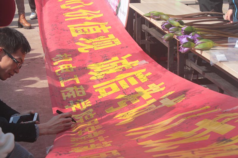 本次倡议活动由suncitygroup太阳新城团学党支部、团委员工会负责。当大地还在沉睡,团学干部们一早起床为今日活动做好准备。“践行社会主义核心价值观,诚信考试,从我做起”这道横幅成为今天校园内最亮丽的一道风景。签字活动吸引了大批行人的驻足与询问,大家严肃庄重的签上了自己的姓名,签字后均有一束蓝莲花赠送。大家纷纷表示将会以身作则遵守校规,诚信考试。