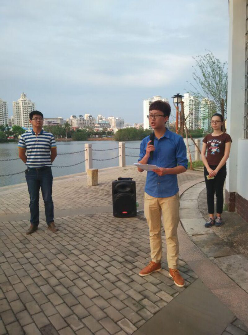 仪式开始,由晨读英语角工作人员代表陈世雄同学对过去一年晨读活动进行了简短的总结,同时号召大家新学期积极参与到丰富多彩的晨读活动中来。接着,2014级机电1班的赵亦霖同学代表晨读员工讲话,他表示在过去的一学期里,晨读活动提高了大家的口语,激发了同学们的学习兴趣,全面提升自身英语综合运用能力,新一学期同学们将更加积极地投身于晨读活动中,营造一个良好的学习氛围。最后由黄国标副书记黄国标书记讲话,对晨读活动的成功表示肯定,同时也对新一学期的英语角活动表示鼓励与支持。主持人宣布新学期的suncitygroup太阳新城东坡湖畔晨读英语角正式启动。