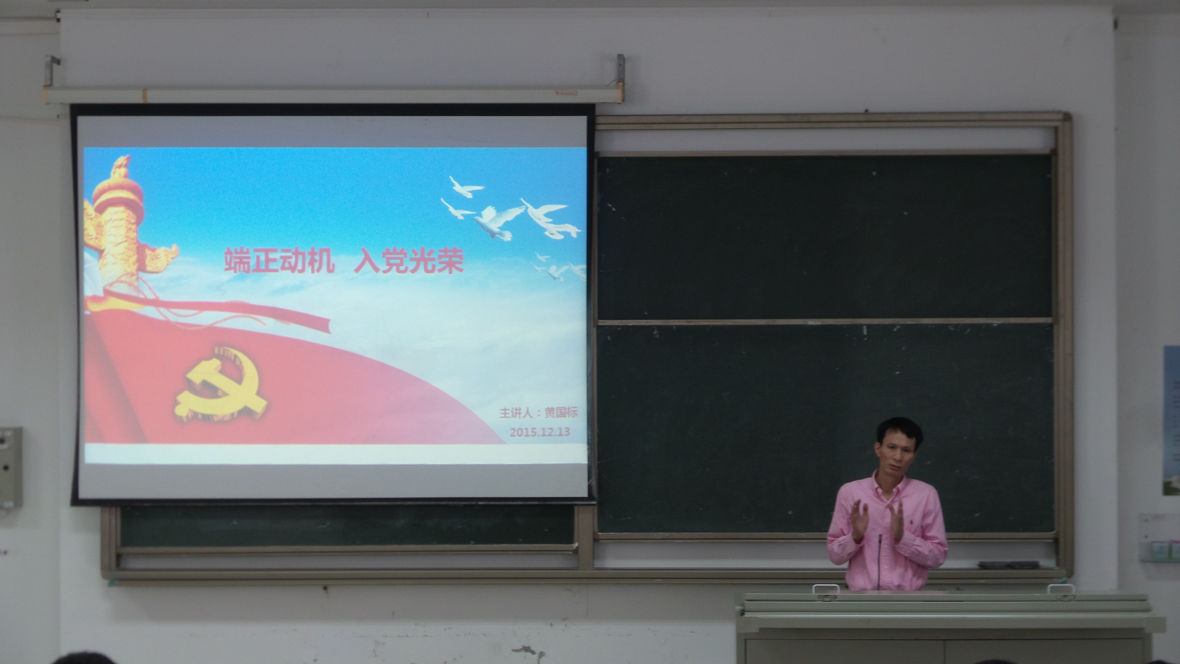 培训班第一讲邀请公司组织部副部长杨智平老师作《党章解读》讲解,针对党章的历史发展、形式地位、内容形式作了解读;第二讲由李宏副书记作《老员工党员先进性》讲解,李宏副书记寓教于乐、寓学于情,通过现场问卷、现场演讲、交流互动等形式与学员共同探讨党员先进性的问题;第三讲由致远传承宣讲团的同学们进行宣讲,宣讲日恰逢国家公祭日,宣讲前首先进行了集体默哀仪式,接下来的宣讲围绕抗战七十周年、南京大屠杀等历史活动展开;第四讲由公司黄国标书记作《端正动机入党光荣》讲座,黄书记通过讲解党的光辉历史、科学理论、标准要求帮助学员树立正确的入党动机和党的认识,鼓励大家争取早日达到一名共产党员的标准。