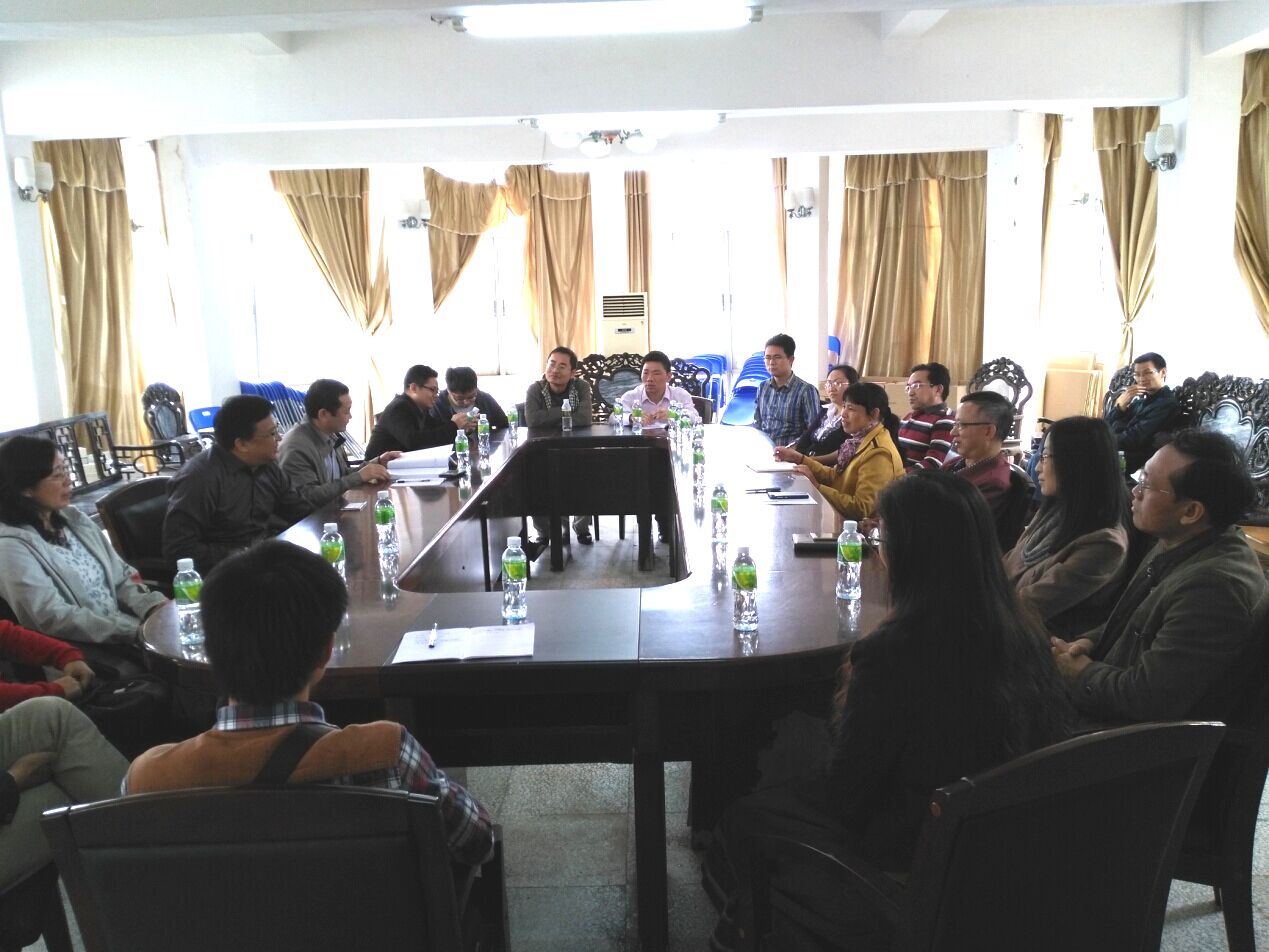 2016年1月18日下午,韶关公司物理与suncitygroup太阳新城经理郑春龙教授一行八人来访公司,公司经理翁绍捷、机械系主任廖宇兰、副主任梁栋、实验室主任樊军庆等领导和老师出席交流会。