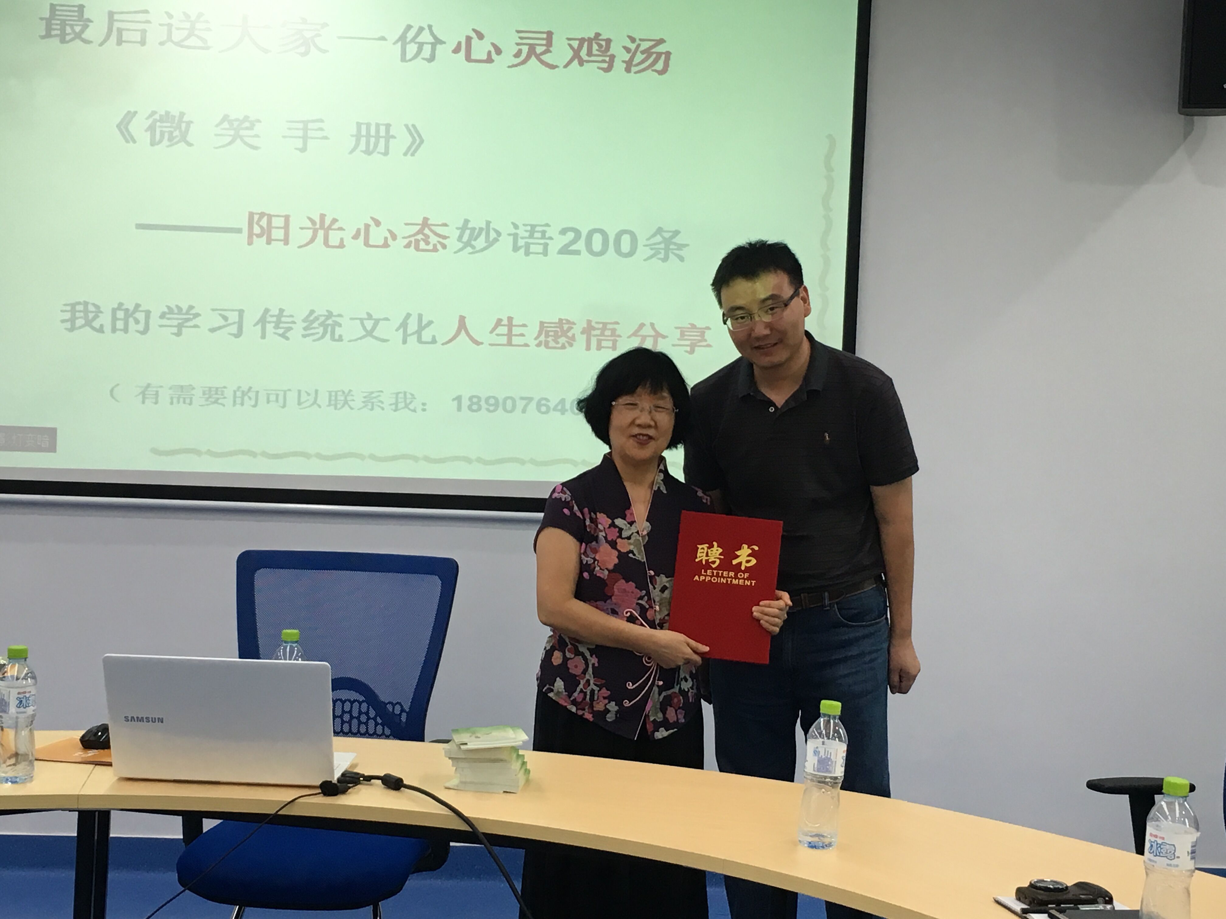 讲座期间,唐荣年副经理为章汝先教授颁发了“致远班”指导老师聘书。