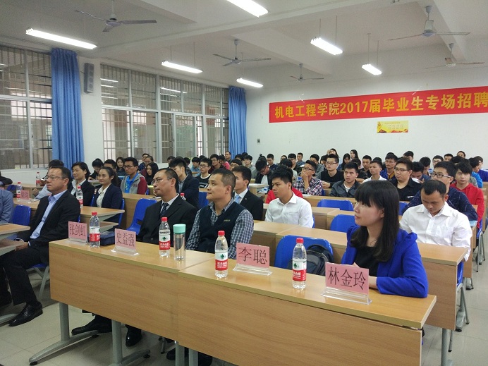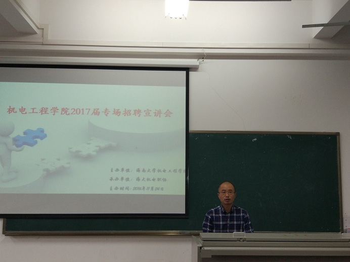 为进一步深化校企合作,促进毕业生高质量实习和就业,2016年11月24日下午,2017届毕业生第二场专场招聘宣讲会在4教115成功举办。出席本次招聘宣讲会的有公司党委副书记李宏、学工办主任崔建兵,四家用人单位人事部主要负责人,2017届毕业生及机电职协工作人员,共计100余人。