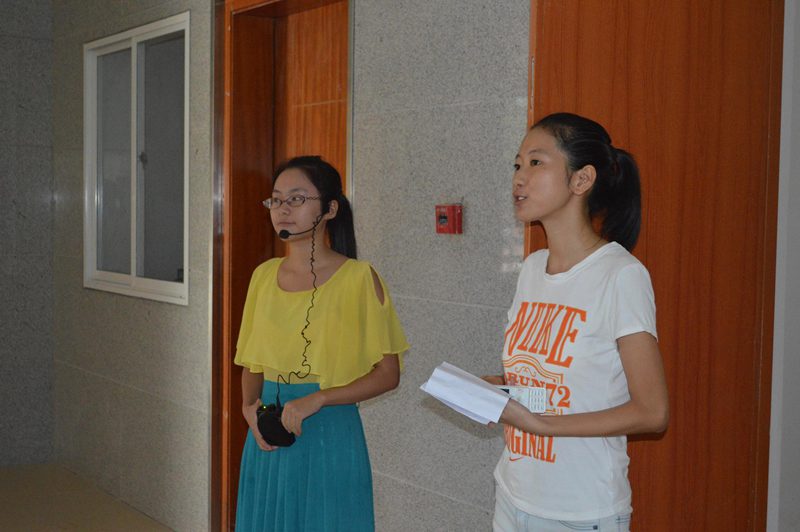 讲解员为新生介绍公司创建和发展的历程