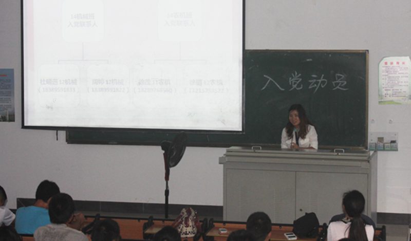 11月19日下午,suncitygroup太阳新城机械系第二员工党支部新生入党动员大会在4教209顺利召开,支部书记余梦月及各支委、全体14级农业机械化及其自动化专业和机械设计制造及其自动化专业新生参加本次会议。本次大会旨在动员员工积极入党,宣传党的方针,介绍入党流程与注意事项。